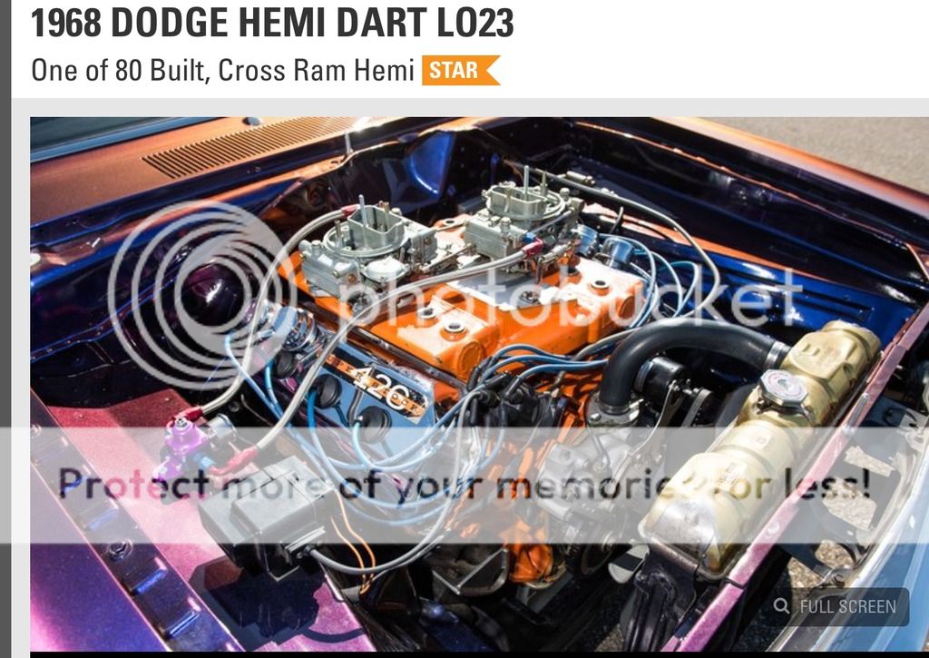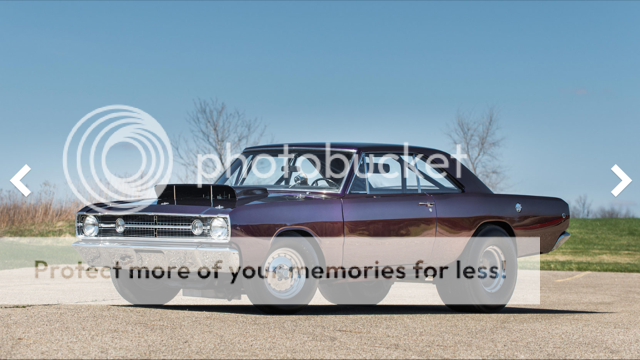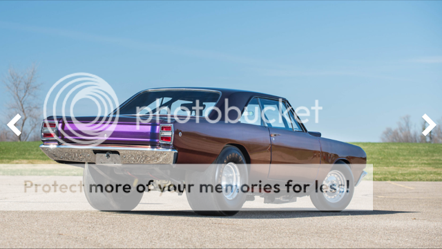 Long ago, he had painted the L023 Dart and the B029 Barracuda matching House of Kolors Chromallusion paint (which is kind of cool, but simply has to go). *I will attach some photos of it in its current state. I am going to pull the Super Stock hemi and keep it on an engine stand in my garage as a decoration, and I am having Tim Banning/ForHemisOnly build me a nice mild-to-moderate race hemi to run in the car for now. I was so impressed with him when he built the Hemi stroker for my '67 GTX, that I was anxious to work with him again (see link here: http://forhemisonly.com/project/clint-brunner/ *)