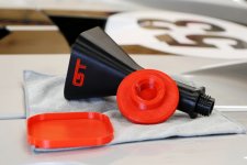Just rcvd my new oil filler funnel (https://www.fordgtforum.com/forums/threads/3d-printed-oil-funnel.39548/) from member @PIlotGore and wanted to say, It's cool! See pix below. It's threaded(!) so it screws right into your FGT's oil filler neck, so you won't have your day month ruined anymore from your old junky funnel (